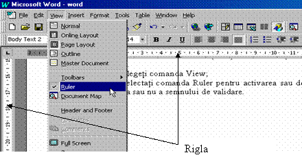 Rigla va permite sa pozitionati si sa mutati rapid tabulatorii, sa identati paragrafele.