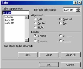 7. Stergerea tabulatorilorPasul 1: Alegi comanda Tabs din meniul Format;