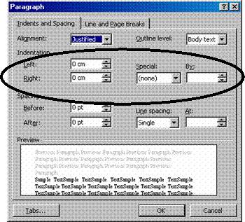 Cu ajutorul comenzii Paragraph din meniul Format se pot defini exact valorile pentru identarea paragrafului.