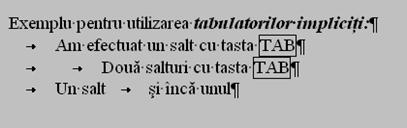 de tabulare (introduse in text ca urmare a apasarii tastei Tab ), sub forma unor mici
