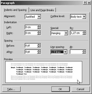 b. În rubrica Identation se seteaza pozitia laturilor din stânga si dreapta ale paragrafului fata de marginea stânga si dreapta a paginii de text (Left/Right). O valoare negativa conduce la iesirea paragrafului spre exterior depasind marginile pentru text stabilite în Page Setup.