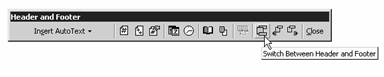 Pas 2. Clic pe Switch Between Header and Footer din bara Heder and Footer pentru a selecta partea unde este numarul de pagina.