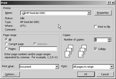 Selectati File Print sau dati direct Ctrl+P. Se deschide fereastra de dialog ce permite:
