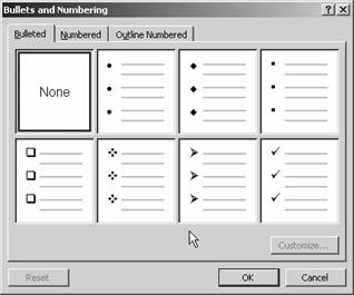 Analog pot fi sortate liste marcate sau numerotate sau o secventa de paragrafe.