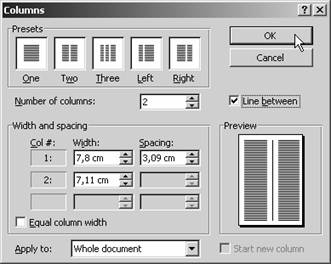 5. În rubrica Space Between Columns se introduce distanta între coloane;