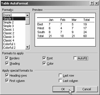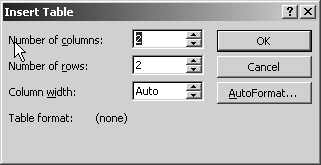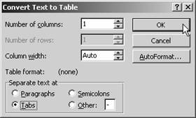 textului în celule se poate face conform optiunilor: Paragrafs - un paragraf este transformat într-o celula, Tab - caracterele Tab separa informatiile pe celule, Semicolons - separarea se face prin ;(punct si virgula), Other - permite specificarea