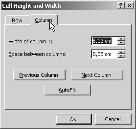 La crearea tabelului toate coloanele au aceeasi latime. Daca este necesara schimbarea lor se procedeaza astfel: