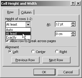 Alegeti Table, Cell Heght and Width, Row, iar în Alignment selectati Left/Center/Right si OK.