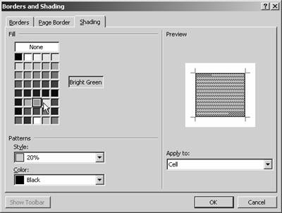 În Patterns modelul care se va suprapune culorii de umplere (Clear, 5%, .);