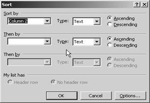 În rubricile Then by se indica similar celelalte coloane dupa care se face sortarea;