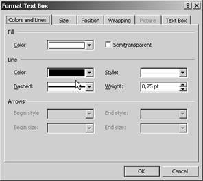 În rubrica Line alegeti culoarea chenarului din palett sau No line pentru un chenar invizibil.
