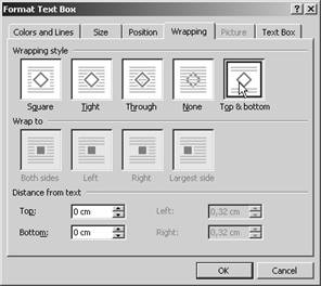 În rubrica Wrapping Style se alege modul de amplasare exterior a textului (Square, Tight, Through, None, Tpo & bottom).