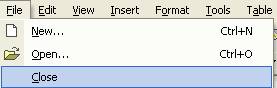 Odata ce s-a terminat de lucrat in document, acesta poate fi inchis. Inchiderea se poate face din linia de meniuri File > Close, conform imaginii de mai jos: