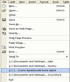 document folosit recent se alege meniul File din bara de meniuri si se deschide documentul la care s-a lucrat de