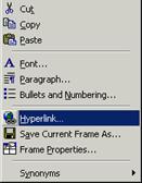 optiunea Hyperlink. din meniul rapid;