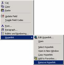 Eliminarea unei hiperlegaturi o poti realiza cu comanda Remove Hyperlink din meniul rapid.