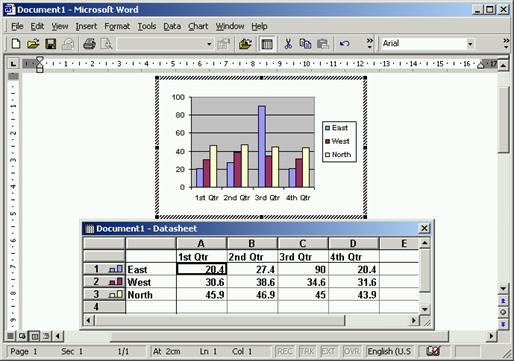 Daca esti familiarizat cu aplicatia Microsoft Excel poti crea atāt tabelul care contine datele cāt si diagramele. Folosind mecanismul de copiere poti lipi īn document legaturi sau obiectul īn sine al oricarui grafic. De asemenea, poti utiliza aplicatia Microsoft Excel Chart care insereaza īn document atāt tabelul cu date cāt si graficul punānd la dispozitia utilizatorului toate facilitatile de care ar dispune daca ar utiliza aplicatia Microsoft Excel fara a parasi aplicatia Microsoft Word