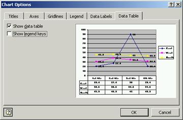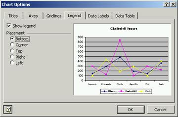 Optiunile graficului sunt grupate īn caseta de dialog Chart Options. Pentru a afisa aceasta caseta de dialog trebuie sa selectezi comanda Chart Options. din meniul Chart sau din meniul rapid.