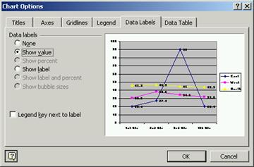 n Data Labels (etichete de date) - adauga etichete pentru toate punctele de date, etichete care contin valorile acestora.