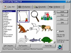 Pasul 2: Alegi din meniu comanda Insert, Picture, Clip Art ;