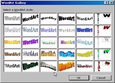 Pentru scrierea folosind efecte speciale se folosesc optiunea WordArt, accesibila pe butonul WordArt de pe bara Drawing sau prin apelarea optiunii Insert – Picture – WordArt.