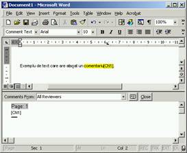 Când lucrezi împreuna cu alte persoane la un document, uneori este necesar sa faci sugestii sau sa adaugi texte care sa explice modificarile facute. Aceste texte pot fi comentarii. Aplicatia îti permite sa inserezi comentarii în document. Comentariile pot fi inserate oriunde în document. Ele sunt identificate în mod automat prin initialele autorului si numarul comentariului.