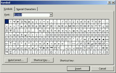 Symbol. - afiseaza caseta de dialog Symbol care permite selectarea unui simbol.