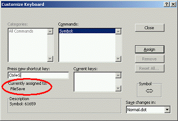 n Apasa Ctrl Alt + litera pe care vrei sa o folosesti. Dupa apasarea combinatiei de taste apare - sub câmpul în care ai inserat combinatia de taste - textul Currently assigned to: (în prezent atribuita la). Pe rândul urmator este trecuta comanda pe care o executa combinatia respectiva de taste sau textul [unassigned] în cazul în care combinatia de taste nu este atribuita unei alte comenzi.