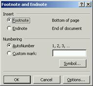 n Selecteaza comanda Footnote… din meniul Insert