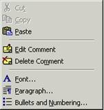 Edit Comment (editeaza comentariu) – afiseaza comentariile in partea de jos a ferestrei si pozitioneaza punctul de inserare la inceputul comentariului pe care se afla indicatorul mouse-ului.