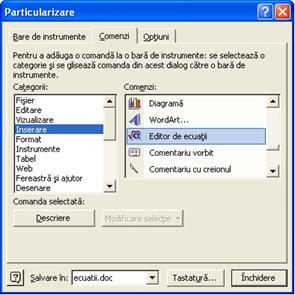 comanda Editor de ecuatii,