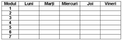 - Se construieste un tabel ce contine orarul unei grupe de