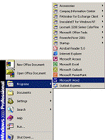n din lista de optiuni a meniului Programs pozitioneaza cursorul mouse-ului pe optiunea Microsoft Word si executa clic.