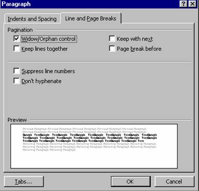 - Widow / Orphan Control previne tiparirea ultimei linii a unui paragraf