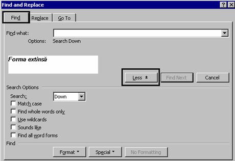 and Replace in format restrans sau extins. Trecerea de la o forma la alta se