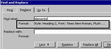 n Style deschide caseta de dialog Find Style. Vei selecta din lista stilul cu care a fost editat textul pe care vrei sa-l gasesti sau sa-l inlocuiesti.