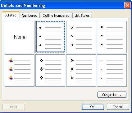 Format\Bullets and numbering (Marcatori si numerotare) 828o144i