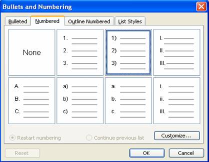 customize= se poate seta elemental de inceput al listei( ex. Numararea sa inceapa de la 2)