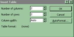 Standard. Acest buton corespunde comenzii Table, Insert table :