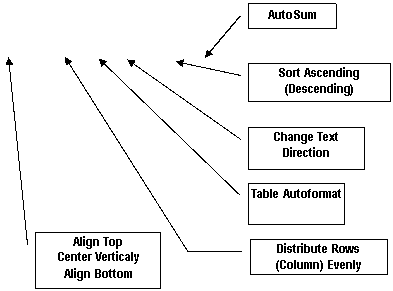 number of column = alegerea numarului de coloane dorit de utilizator number of rows = alegerea numarului de linii dorit column width = permite alegerea latimii dorite a coloanei (setarea automata este cu coloane distribuite egal pe latimea paginii autoformat = intrarea intr-un sistem de asistenta ce permite alegerea tipului de tabel dorit |