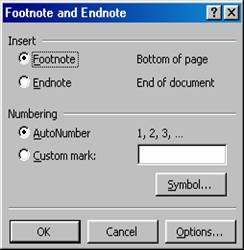 Pasul 3: Alegi optiunea Footnote pentru nota de subsol sau optiunea Endnote pentru nota de final;