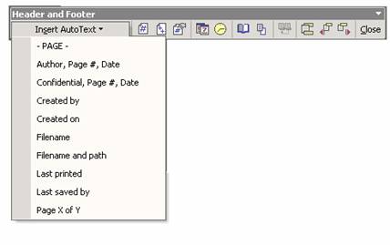Insereaza un sablon in locul unde se afla cursorul in antet/subsol (Fig. 3. 41) |
