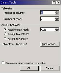 Selectati comanda Table. - apare caseta de dialog Insert Table (Fig. 3. 53) ;