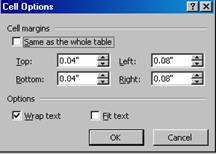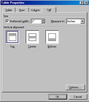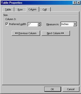 Alegeti Table Properties.; apare o caseta de dialog care contine patru etichete (Fig. 3. 60); se alege eticheta dorita Column, Row sau Cell;