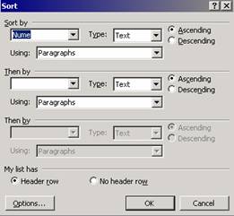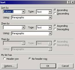 Alegeti Sort.- apare o caseta de dialog Sort (Fig. 3. 61) sau (Fig. 3. 62) - daca in selectie ati prins si eticheta coloanei selectate, setarile implicite din caseta de dialog Sort (vezi caseta Sort by si activarea implicita a butonului radio Header row) vor fi de forma prezentata in Fig. 3. 61;