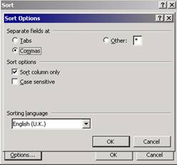 Daca doriti ca sortarea sa fie restransa (sunt sortate doar celulele din selectie) si nu extinsa in tot tabelul (sortarea continutului din toate coloanele tabelului dupa coloana selectata), accesati butonul Options - apare caseta de dialog Sort Options (Fig. 3. 63) in care validati caseta Sort column only dupa care actionati butonul OK;