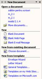 Exista doua alternative in a deschide un nou document: