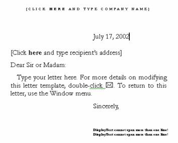 Dupa cum se observa, toate sabloanele contin un text care indruma utilizatorul in modul de utilizare al sablonului. Oricare din aceste texte poate fi selectat si sters sau inlocuit cu textul care se doreste a fi introdus.