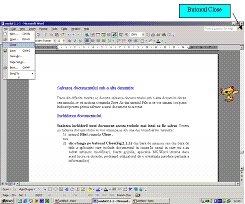 meniul File, optiunea Close (Fig. 3. 14 ) sau