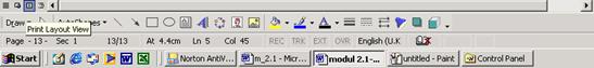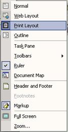 Comutarea intre aceste posibilitati de vizualizare a documentului curent se poate realiza prin actionarea comenzilor din meniul View (Fig. 3. 16 ) sau prin actionarea butoanelor prezente in partea stanga a barei de derulare pe orizontala (Fig. 3. 17 )